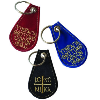 Μπρελόκ Από Δερματίνη – «Υπεραγία Θεοτόκε Σώσον Ημάς» Διπλής Όψεως