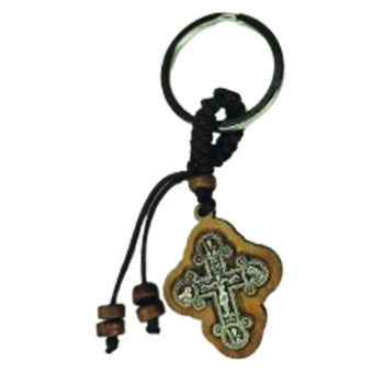 Μπρελόκ Σταυρός Με Ξύλο Και Μέταλλο
