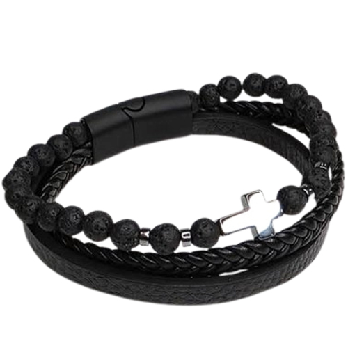 Ανδρικό Βραχιόλι Με Σταυρό Και Ξύλινες Χάνδρες