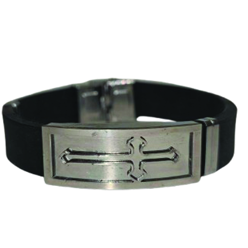 Ένα κομψό και ανθεκτικό βραχιόλι που συνδυάζει στυλ και πίστη. Το μαύρο δέρμα αγκαλιάζει τον λεπτοδουλεμένο σταυρό