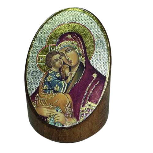 Εντυπωσιακή εικόνα της Παναγίας επάνω σε φυσικό κορμό ξύλου, διακοσμημένη με foil επικάλυψη που χαρίζει λαμπερή μεταλλική όψη. Ένα μοναδικό εκκλησιαστικό διακοσμητικό που συνδυάζει την ιερότητα της εικόνας με την αισθητική της χειροποίητης τέχνης.