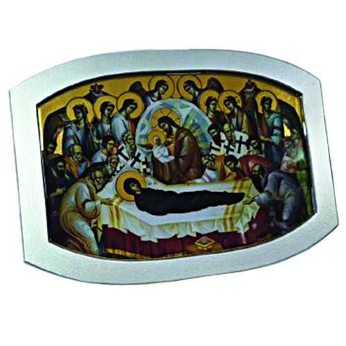 Εικόνα σε ξύλο βαμμένη με ασημί φύλλο χρυσού και εποξικό γυαλί